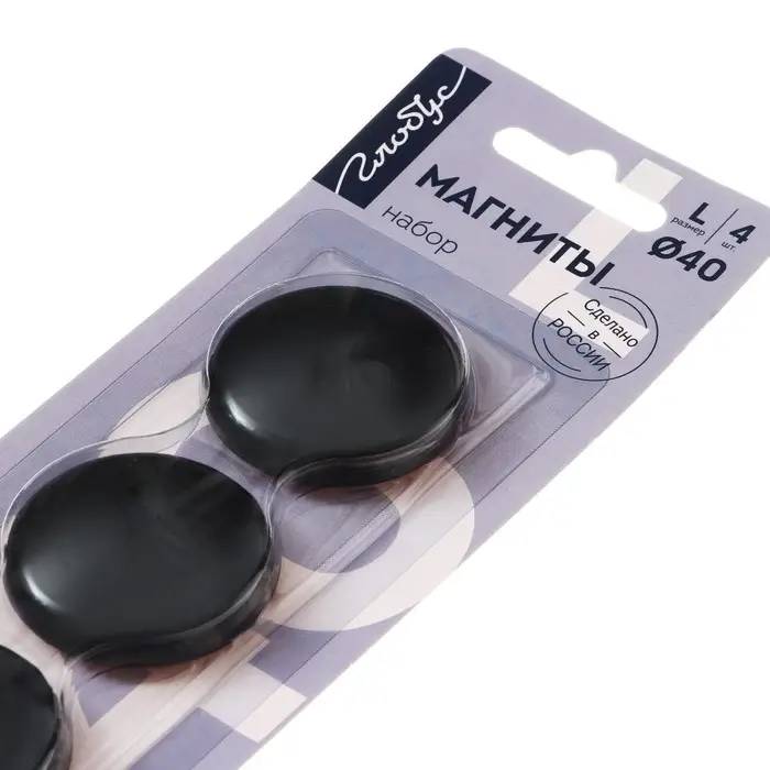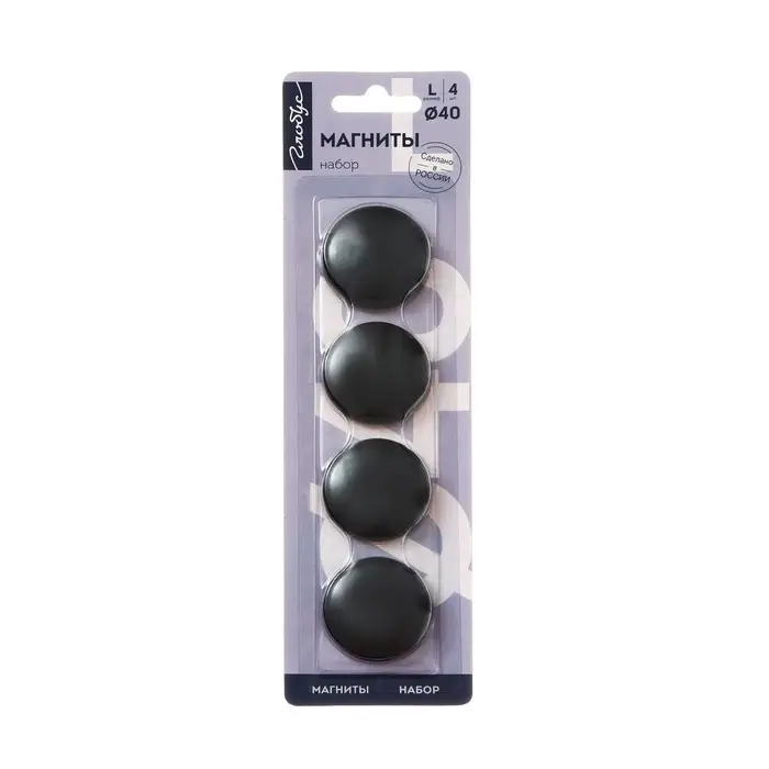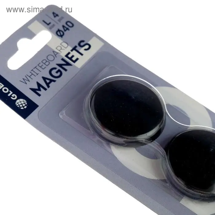 Магниты для досок 40 мм, 4 штуки, GLOBUS чёрный, в картонном блистере