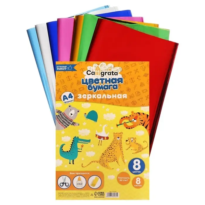 Набор бумаги зеркальной А4, 8 листов, 8 цветов, 80 г/м2