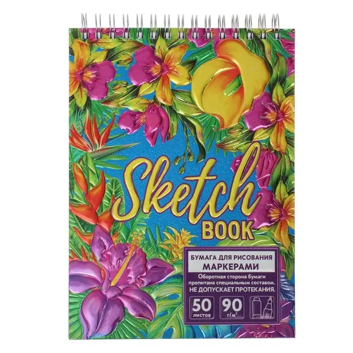 Скетчбук-блокнот для рисования МАРКЕРАМИ – идеальный вариант для скетчей, зарисовок, дизайнерских набросков. Блокнот состоит из 50 листов плотностью 90 кв.м. На гладкой бумаге можно рисовать фломастерами/маркерами, гелевыми ручками и даже тушью. Бумага для маркеров не просвечивается и не позволяет растекаться надписям и рисункам. Удобный формат блокнота создаёт более сбалансированный образ работы, что важно для гармоничного визуального восприятия.