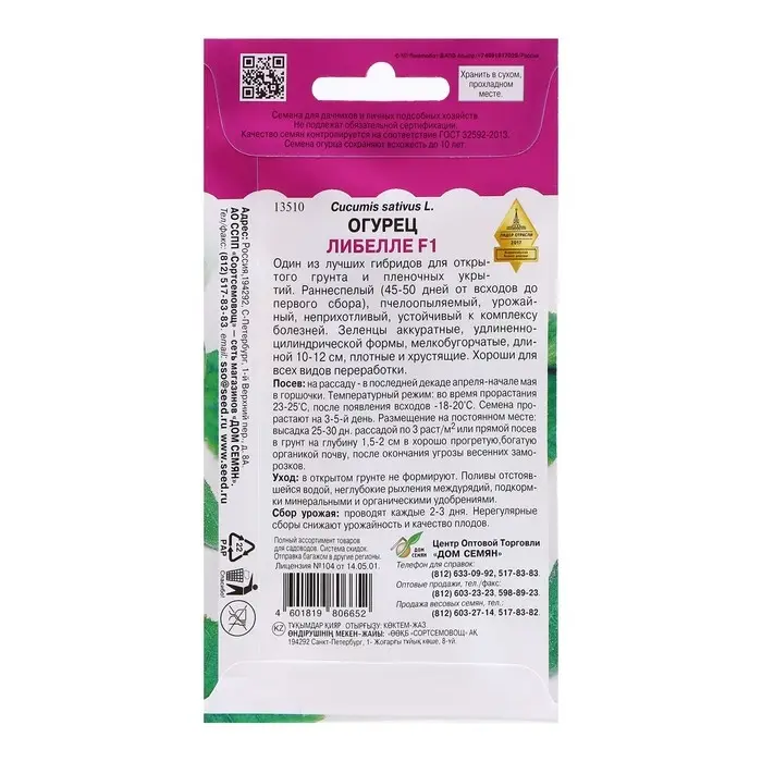Семена Огурец "Либелле F1", максимум, 60 шт