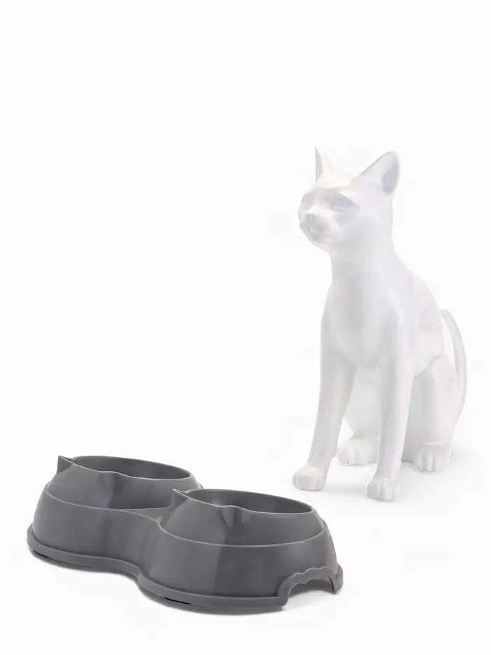 Миска для кошек двойная пластиковая, 25 х 14 х 5 см, серая – это удобное и функциональное решение для кормления вашего пушистого друга. С лёгкостью обеспечьте своему питомцу полноценное питание и доступ к свежей воде, не занимая лишнего места в вашем доме.