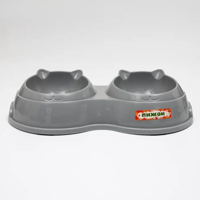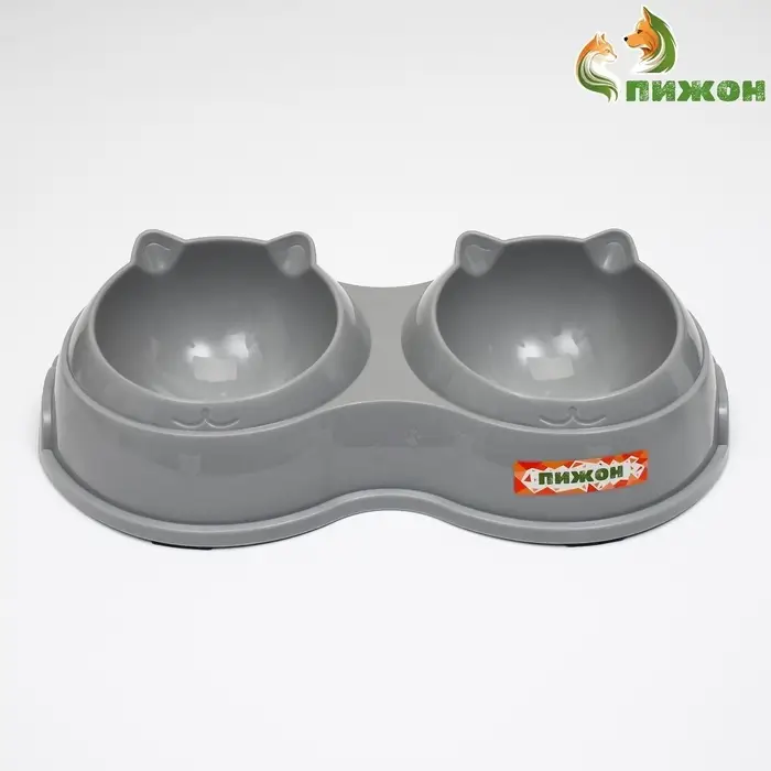 Миска двойная, 240 мл, 25×14×5 см, пластик, серая