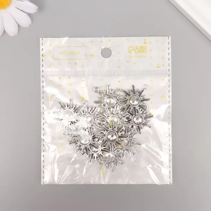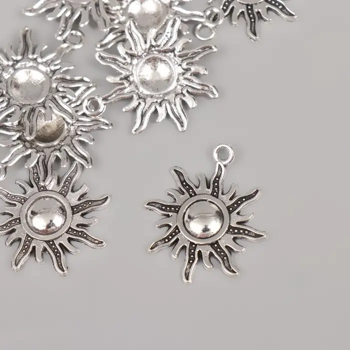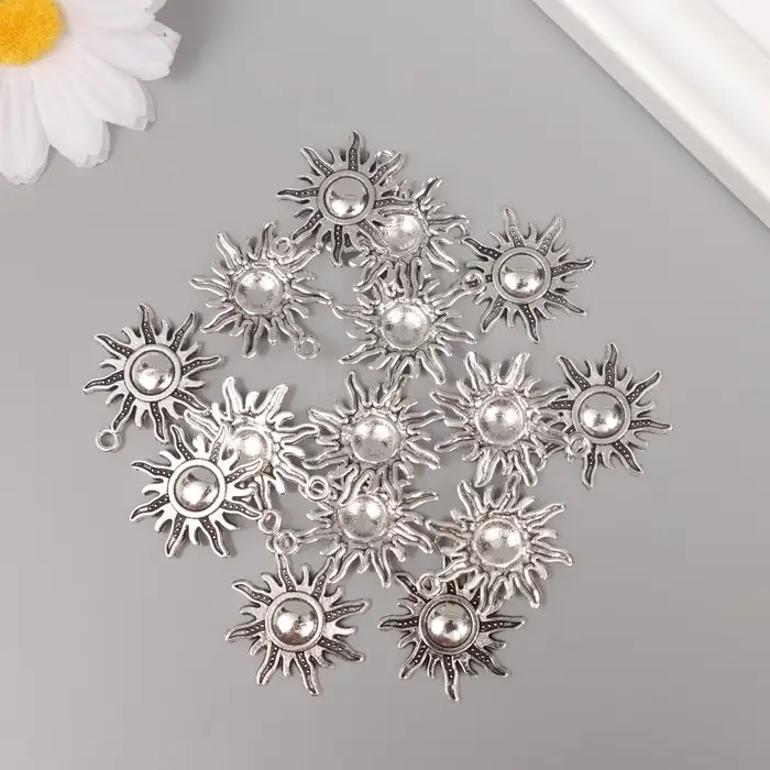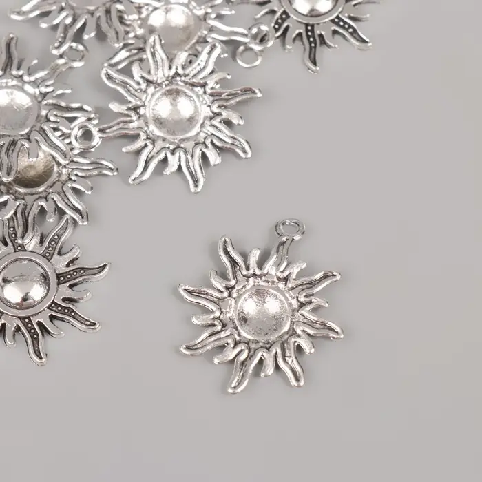 Металлический элемент, декоративная подвеска «Арт Узор. Яркое солнышко», серебро, 2.8×2.5 см