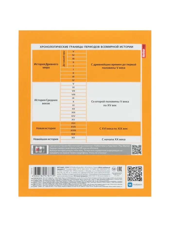 Тетрадь 48л кл "Мой любимый предмет" ИСТОРИЯ, мел карт, S-touch, интер справ, офсет