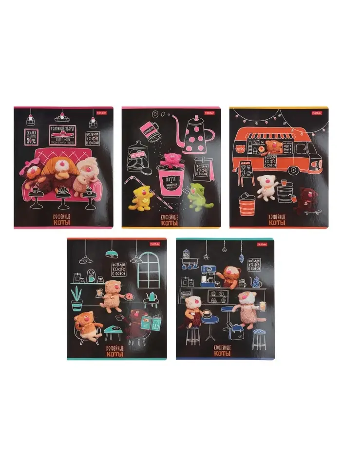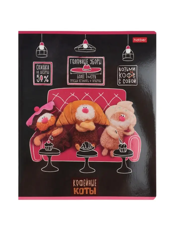 Тетрадь 48л кл Hatber "Кофейные коты", на скобе, скругл углы, 60-65г/м² 5В МИКС