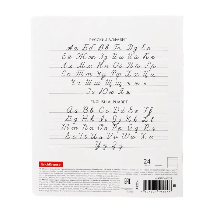 Тетрадь школьная ученическая формата А5+ (170 х 203 мм). Обложка из высококачественного мелованного картона плотностью 180 г/м2. В блоке 24 листа в линейку с полями. Бумага офсетная плотностью 60 г/м2. Цвет линовки - синий. Скругленные уголки обложки и блока. Тип скрепления - скоба. Тетради одного дизайна упакованы в термоусадочную пленку по 10 штук.