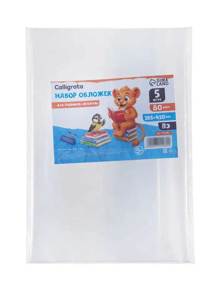 Набор обложек ПЭ 5 штук, 265×410 мм, 80 мкм, для учебника Петерсон