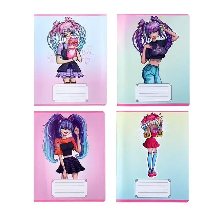 Тетрадь 18 листов в клетку Calligrata "Аниме 07", обложка мелованная бумага, ВД-лак, блок офсет, белизна 95%, МИКС