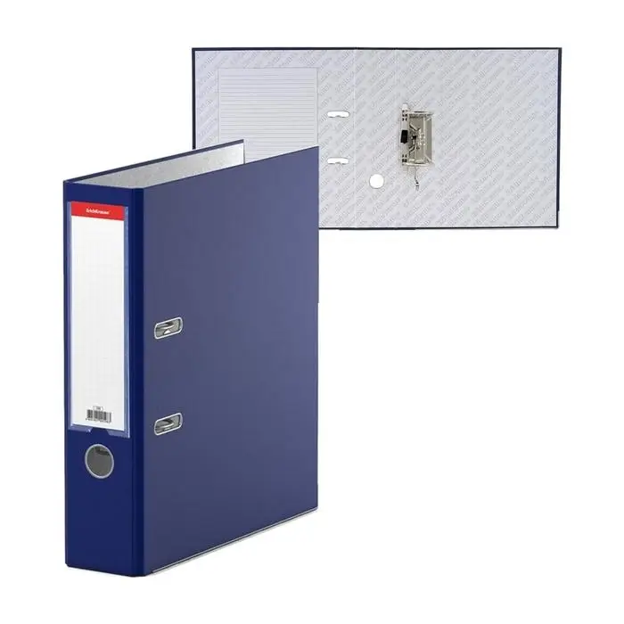 Папка-регистратор А4, 70 мм, «Бизнес», собранная, синяя, пластиковый карман, металлический кант, картон 2 мм, вместимость 450 листов
