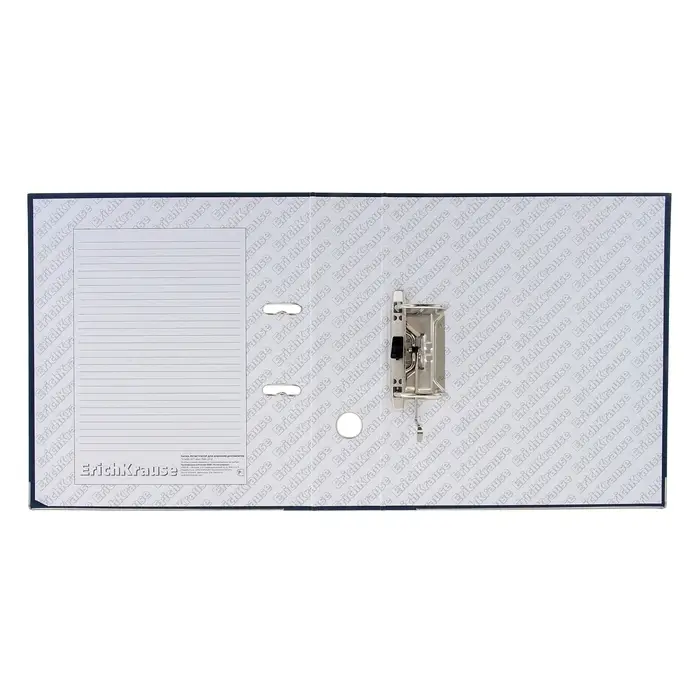 Папка - регистратор формата А4 снабжена стальным арочным механизмом с никелевым покрытием. Изготовлена из плотного картона толщиной 2 мм, покрытого специальным износостойким материалом с фактурным тиснением. Корешок папки шириной 70 мм оснащен прозрачным пластиковым карманом со сменной этикеткой для маркировки. Для удобства использования на корешке имеется металлическое кольцо для захвата. Нижние края обложки защищены металлическим кантом. Металлические фиксаторы удерживают папку в закрытом виде даже при максимальном наполнении. Вместительность до 450 листов бумаги плотности 80 г/м². На форзаце есть шаблон для оглавления.