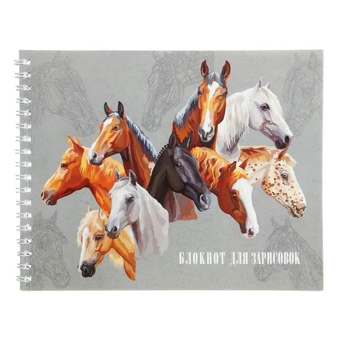Блокнот для зарисовок 160 х 200 мм, 40 листов на гребне по короткой стороне "Лошади", обложка мелованный картон, твёрдая подложка, блок 100 г/м²