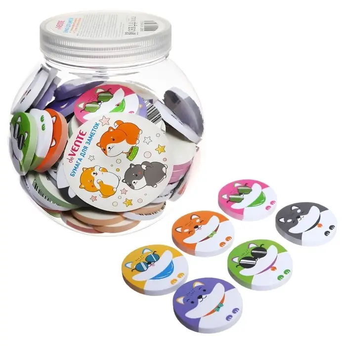 Клейкая бумага для заметок "deVENTE. Shiba" 45x45 мм, 50 листов, офсет 80 г/м², печать 4+0, 6 дизайнов, в пластиковой банке