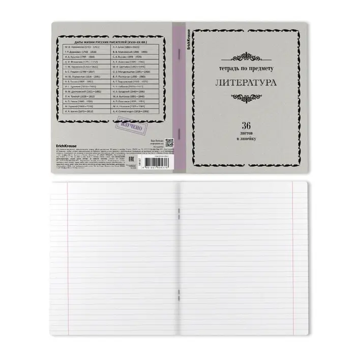 Тетрадь предметная ЛИТЕРАТУРА, 36 листов в линейку, ErichKrause "Академкнига", обложка мелованный картон, блок офсет 100% белизна, инфо-блок