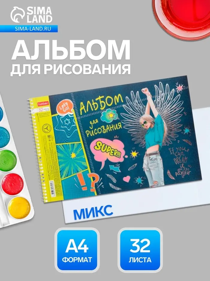 - 32 чистых листа формата А4 предоставляют пространство для серии рисунков или скетчбука.