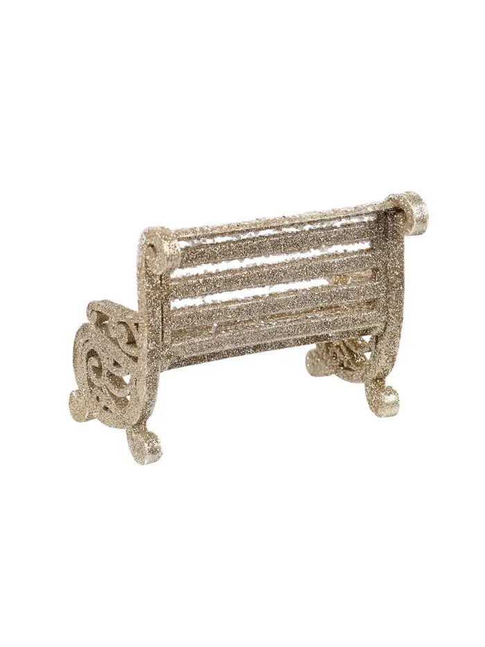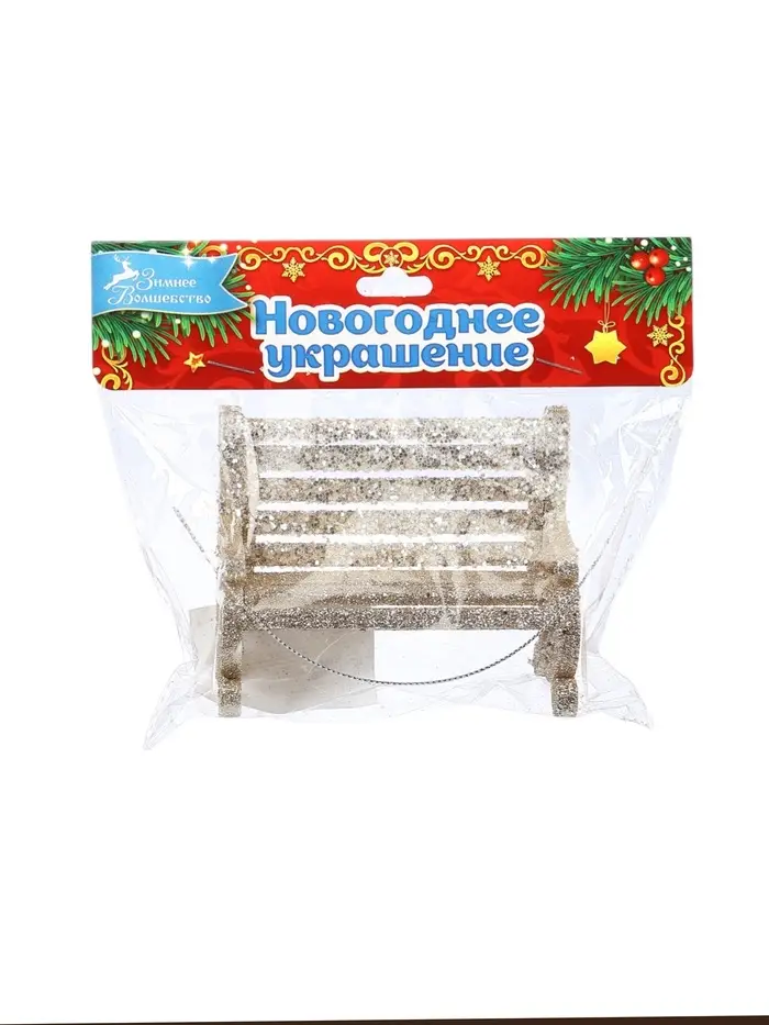 Золотистая миниатюрная скамейка для новогоднего декора размером 7×9 см добавляет уют и изящество в праздничное оформление. Её лаконичный дизайн гармонично вписывается в разнообразные стили, создавая акцент в композиции с другими украшениями.