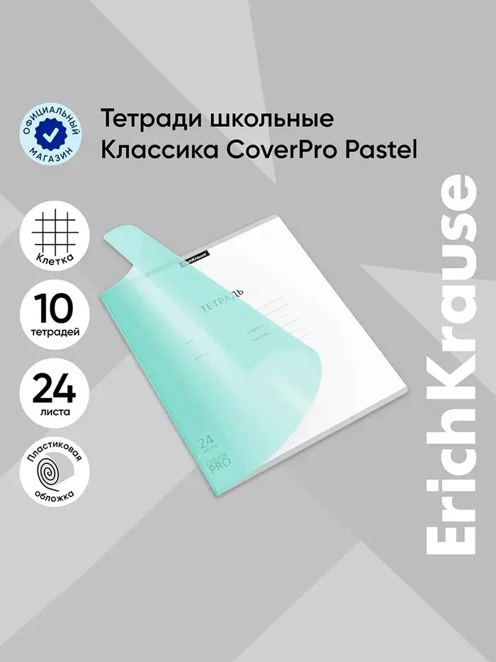 Тетрадь 24 листа в клетку, ErichKrause «Классика. CoverPrо Pastel», пластиковая обложка, мятная