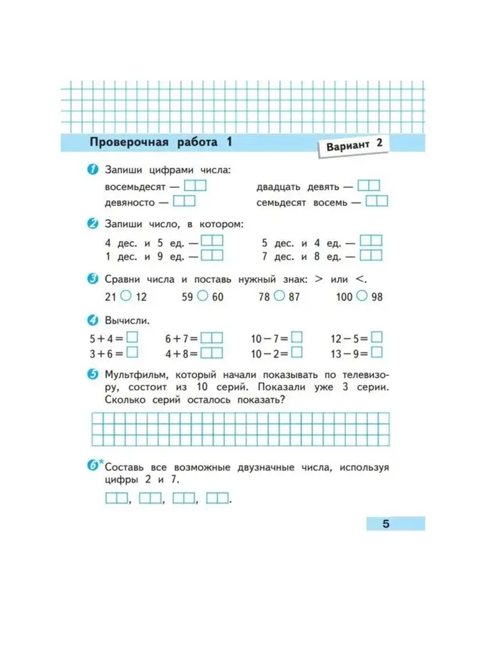 Проверочные работы по математике для 2 класса — это удобное и практичное пособие, которое поможет школьникам закрепить знания и подготовиться к контрольным работам. Учебное пособие разработано в соответствии с требованиями ФГОС и дополняет учебник «Математика. 2 класс» авторов М. И. Моро и других. Оно включает тексты проверочных работ и тесты, которые охватывают ключевые темы курса.