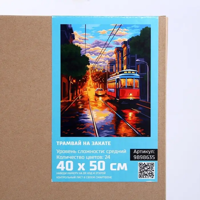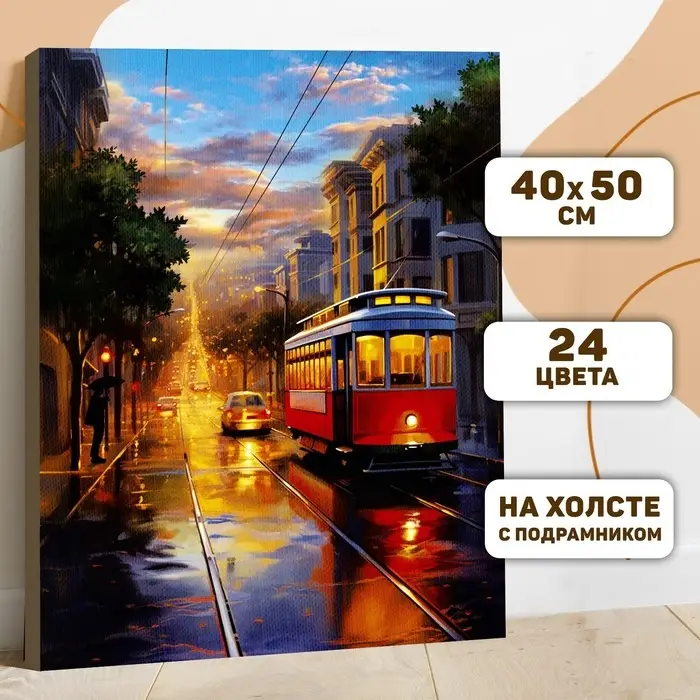 Картина по номерам на холсте с подрамником «Трамвай на закате» 40×50 см