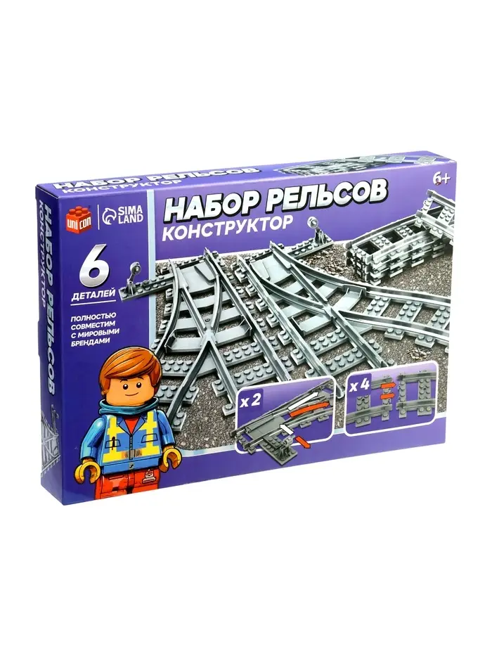 Конструктор ЖД "Рельсы со стрелками", 6 элементов