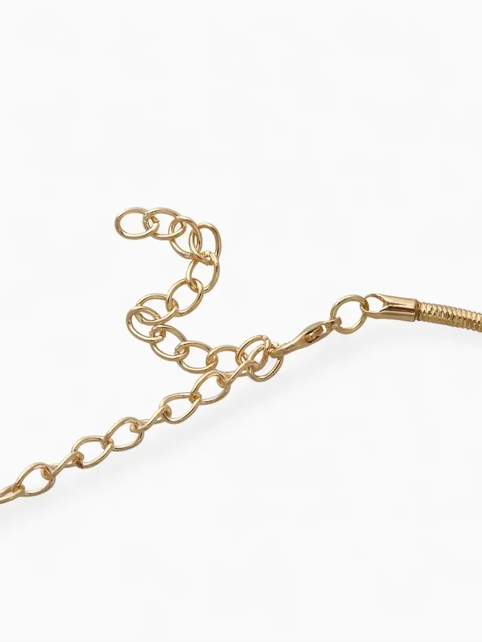 Золотая фурнитура высокого качества гарантирует надёжность и долговечность, а лёгкий вес аксессуаров обеспечивает комфорт при ношении в течение всего дня. Чокер регулируется по длине, что позволяет идеально подстроить его под индивидуальные предпочтения и особенности шеи.