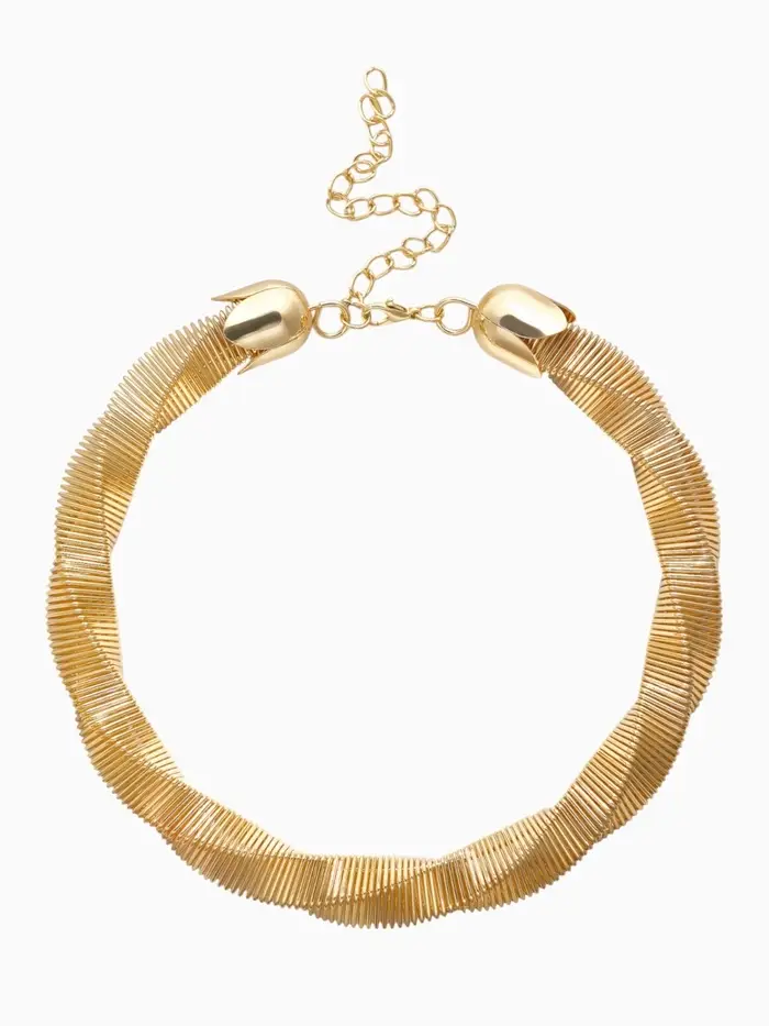 Золотистый чокер-цепь d=15 см с кручёным плетением — воплощение изящества и современного минимализма. Уникальная текстура цепи придаёт украшению глубину и динамичность, создавая эффект лёгкого блеска и объёма без излишней вычурности.