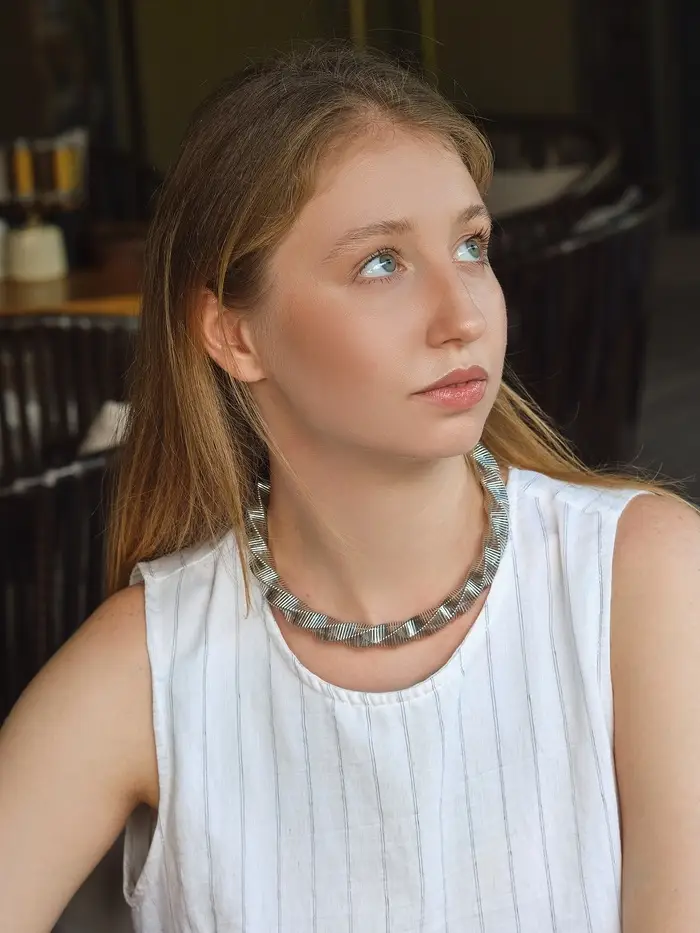 Этот серебристый чокер станет стильным дополнением к вашему гардеробу, подчеркнёт индивидуальность и добавит современную нотку элегантности в любой образ — от повседневного до вечернего.