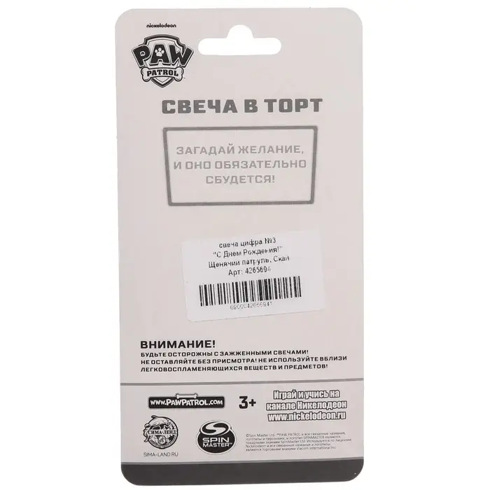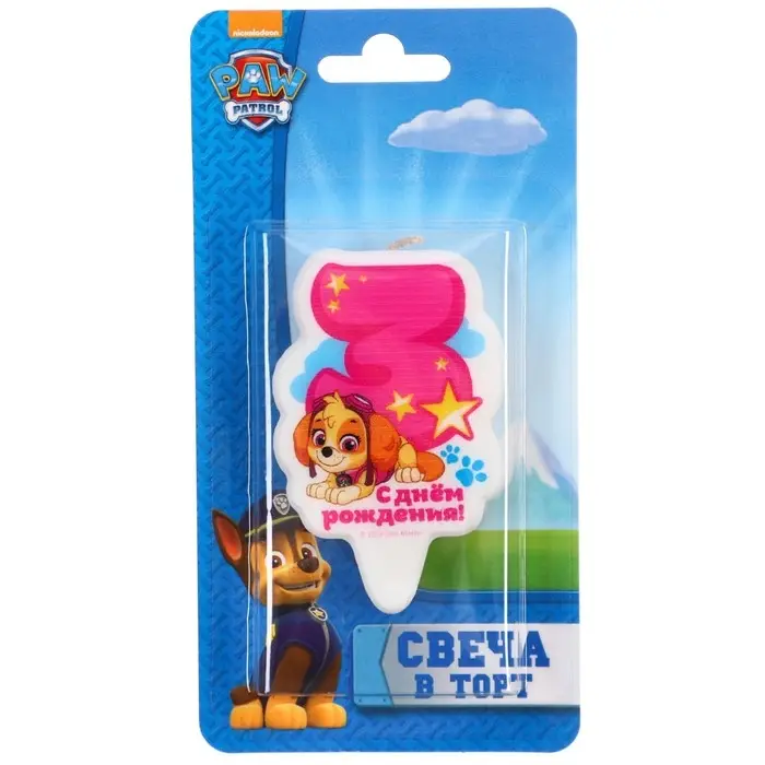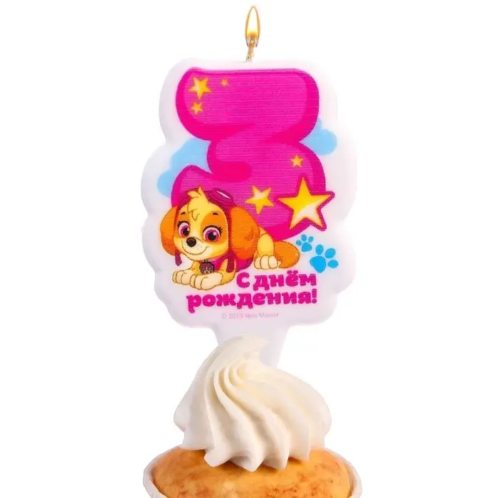 Свеча для торта "Цифра 3", Щенячий патруль