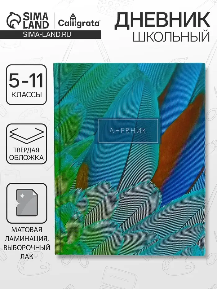 Дневник для 5-11 классов, "Перья 2", твердая обложка 7БЦ, матовая ламинация, выборочный лак, 48 листов