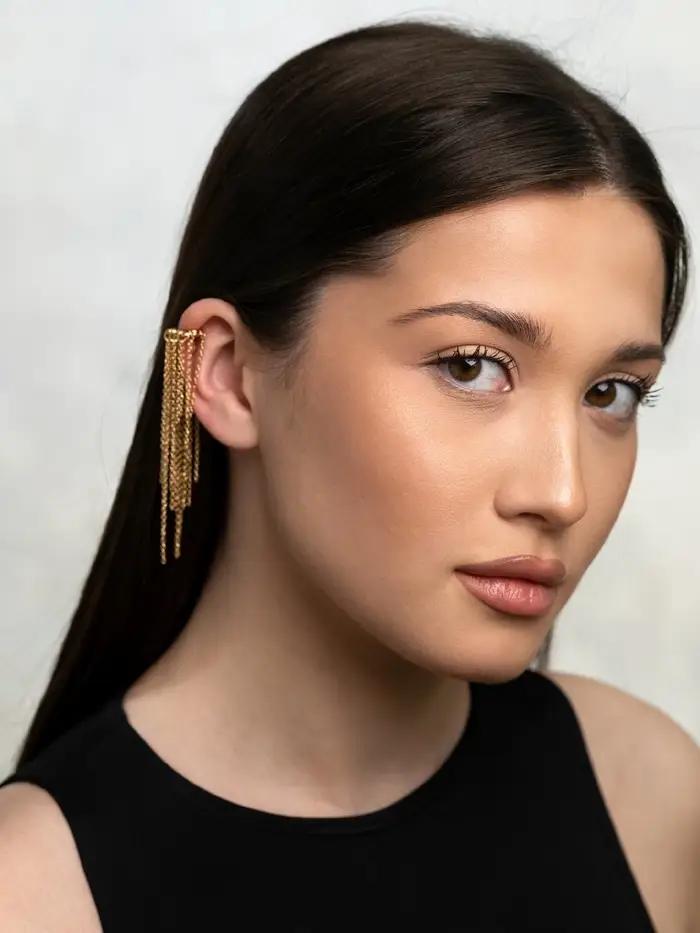 Металлические подвески аккуратно переливаются на свету, придавая украшению динамичность и изящество. Каффа подойдёт для женщин, которые ценят необычные детали и стремятся выделиться без лишних усилий. Благодаря отсутствию необходимости прокалывать ухо, она идеально подходит для тех, кто хочет экспериментировать с образом без боли и ограничений.