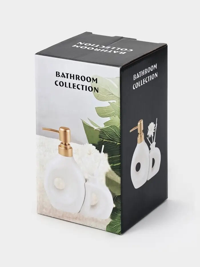 Элегантный набор для ванной из 2 предметов: дозатора для жидкого мыла и диффузора для ароматических масел. Выполнен из высококачественной керамики в классическом белом цвете. Минималистичный однотонный дизайн создает атмосферу чистоты и гармонии.
