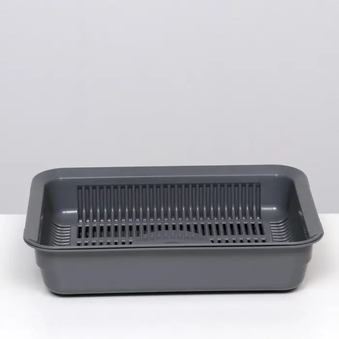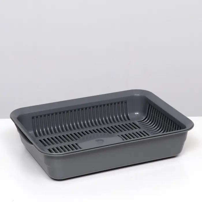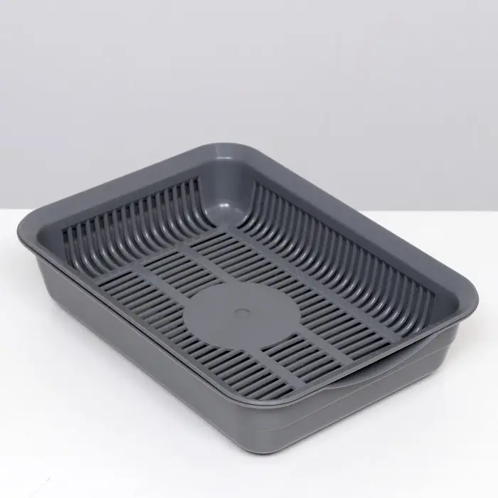 Туалет для кошек, 35.5×26×7 с, с сеткой, пластик, серый