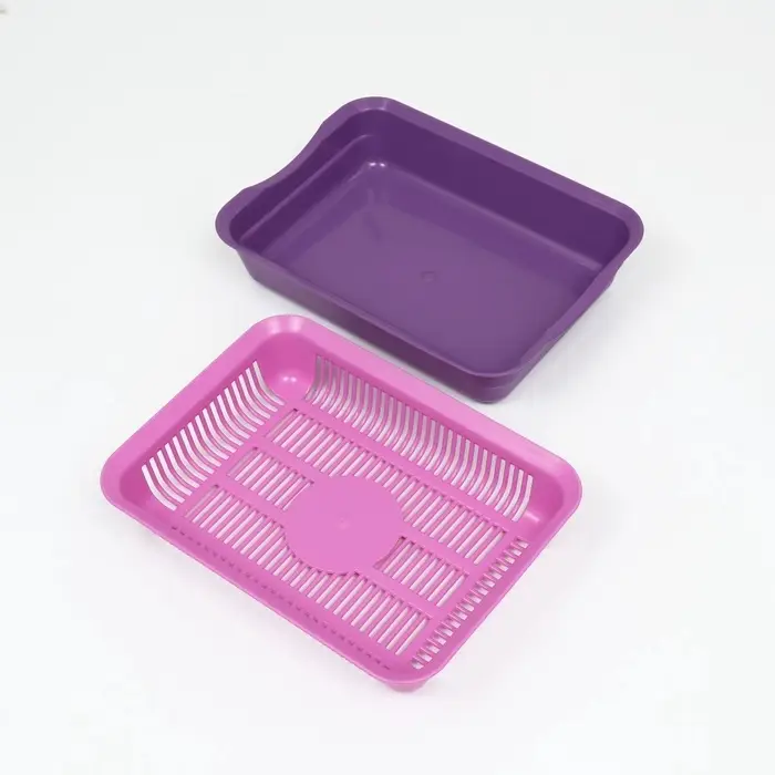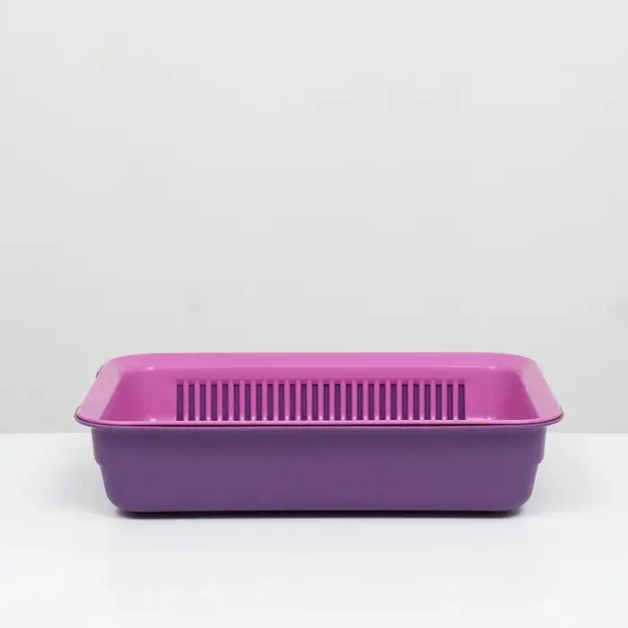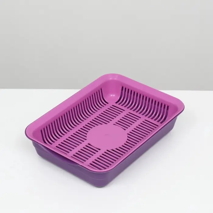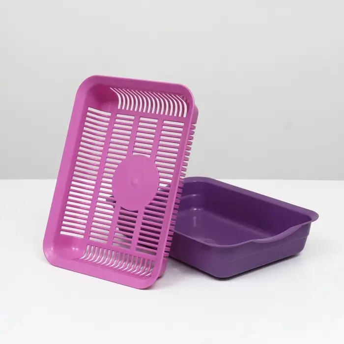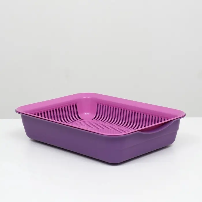 Туалет для кошек, 35.5×26×7 см, с сеткой, пластик, фиолетовый, розовая