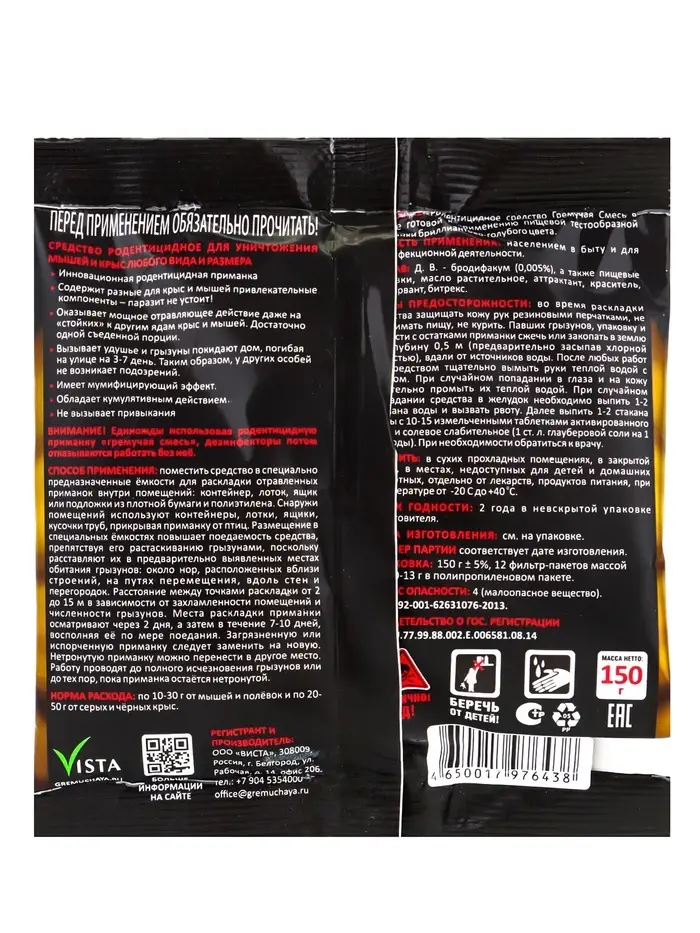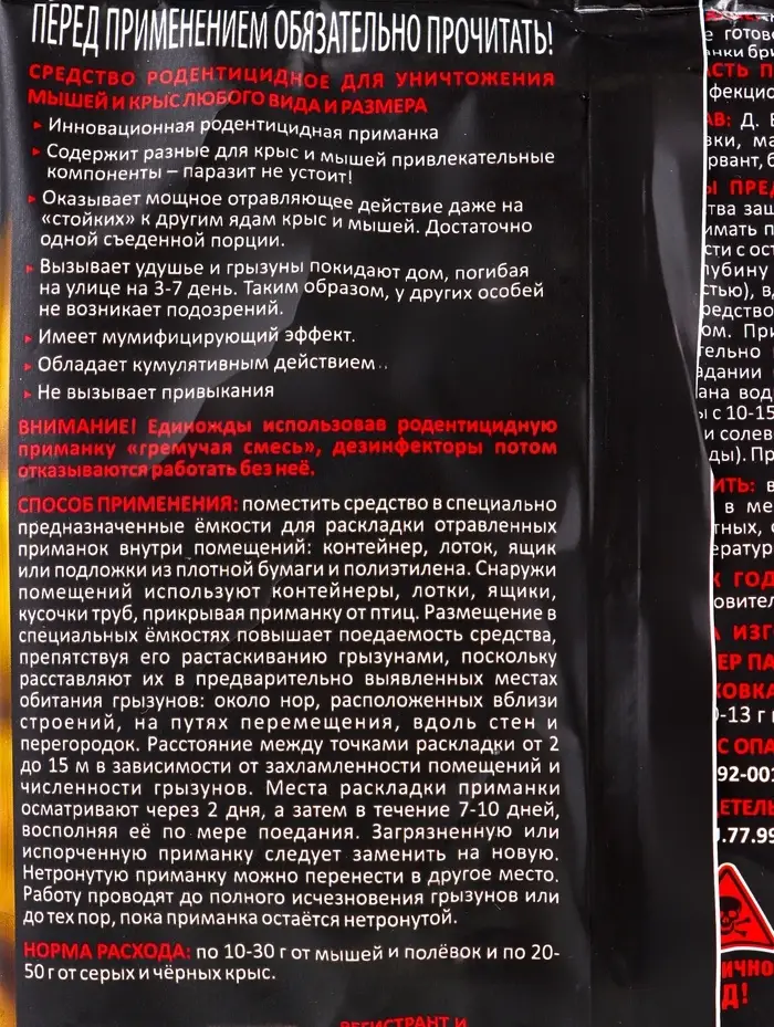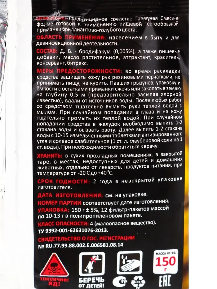 Тесто-брикеты Родентицидная приманка "Крысам Смерть" 150гр
