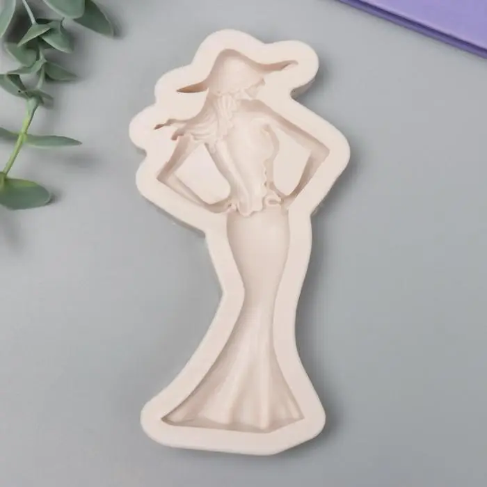 Молд силикон "Девушка в шляпке и длинном платье" 14х6,3 см 1,9х15,5х8 см