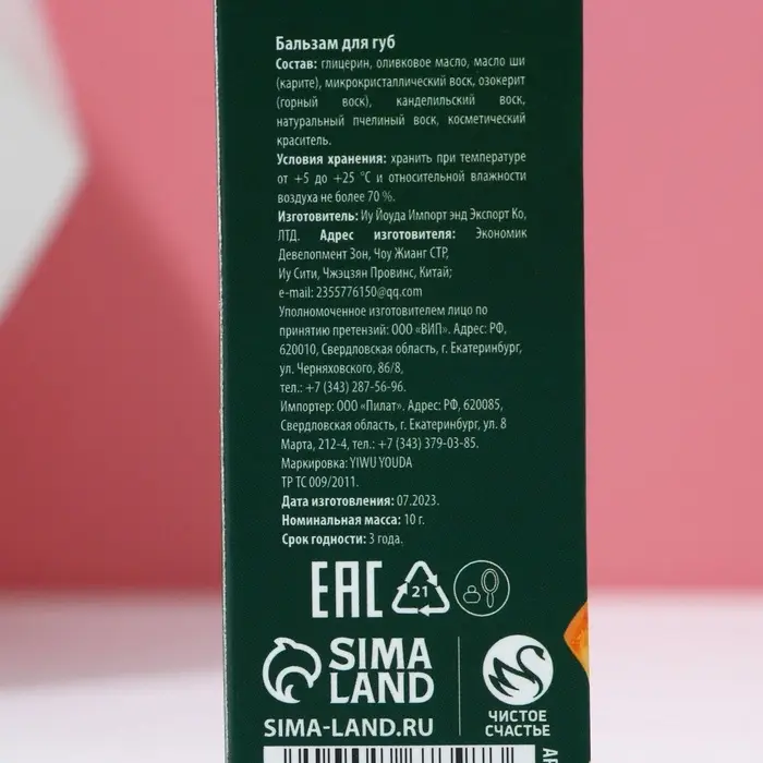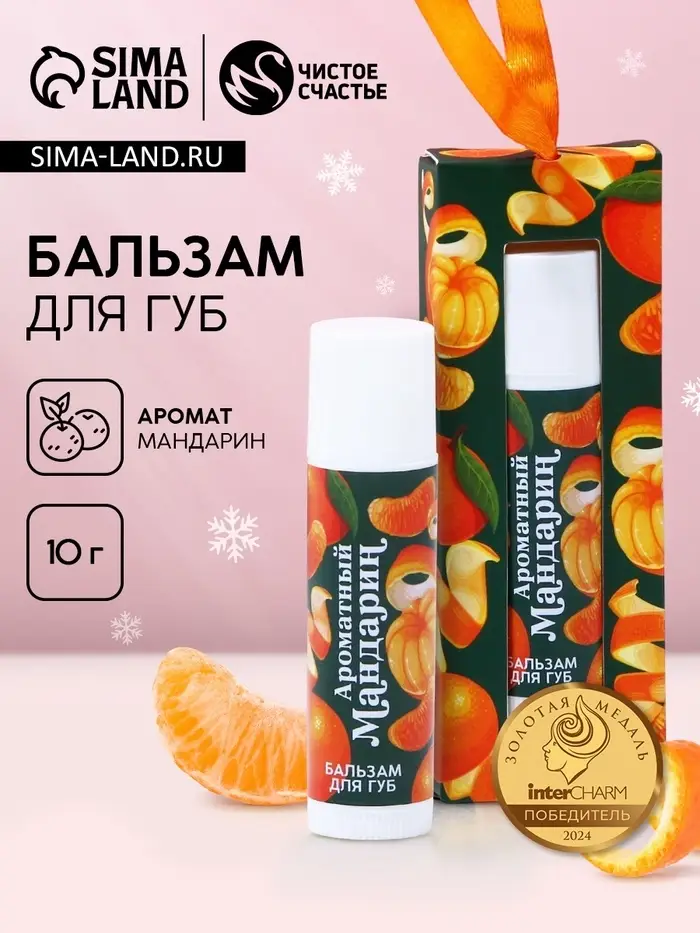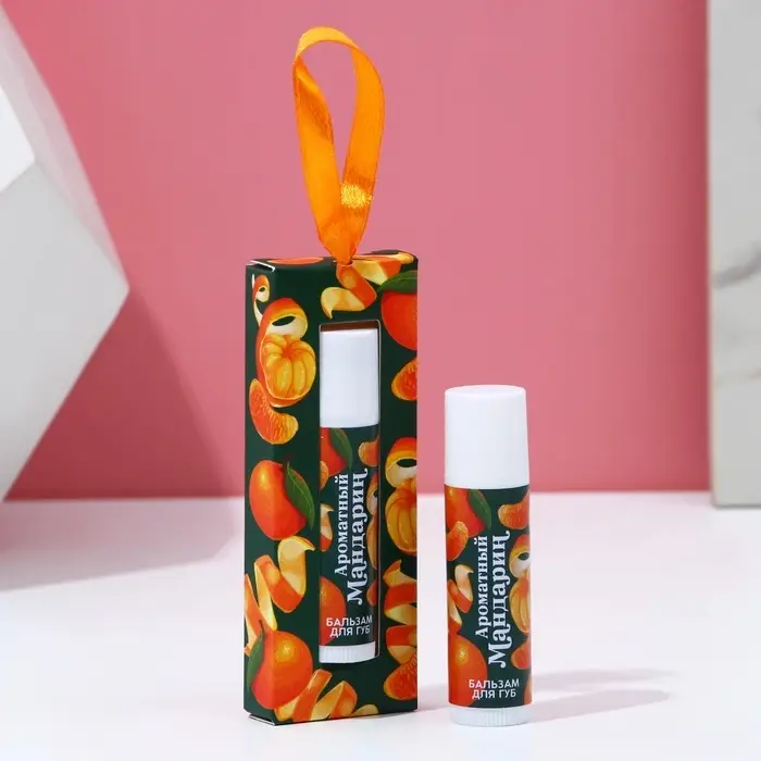 Бальзам для губ в коробке, 10 г, аромат мандарина, Чистое счастье