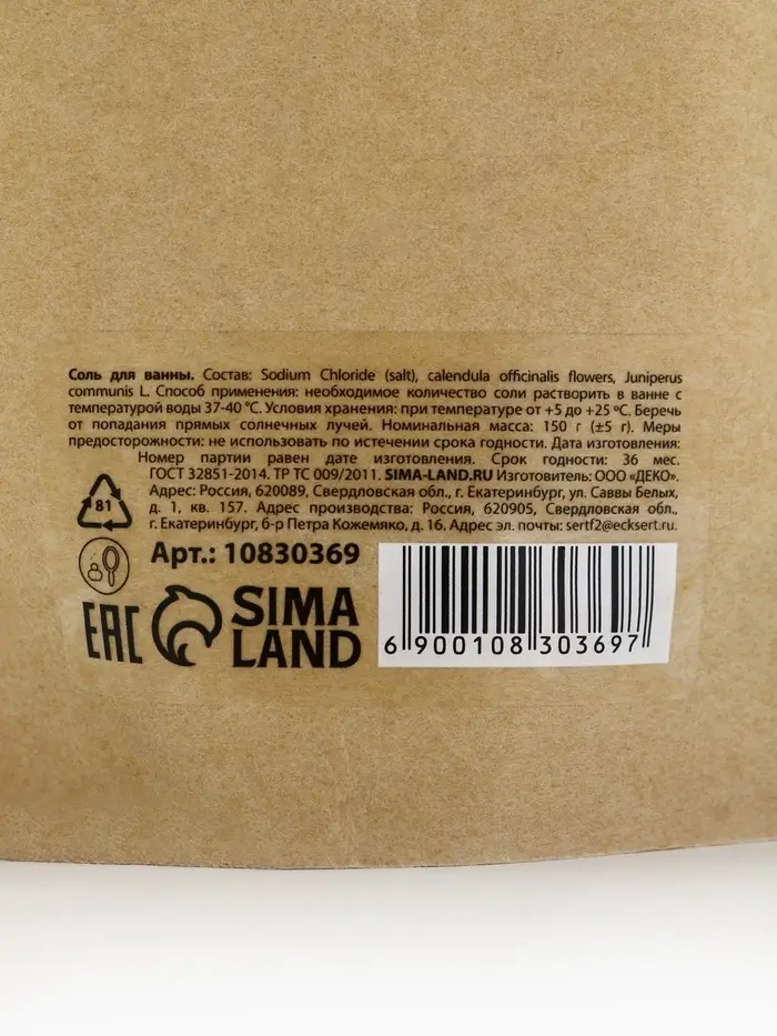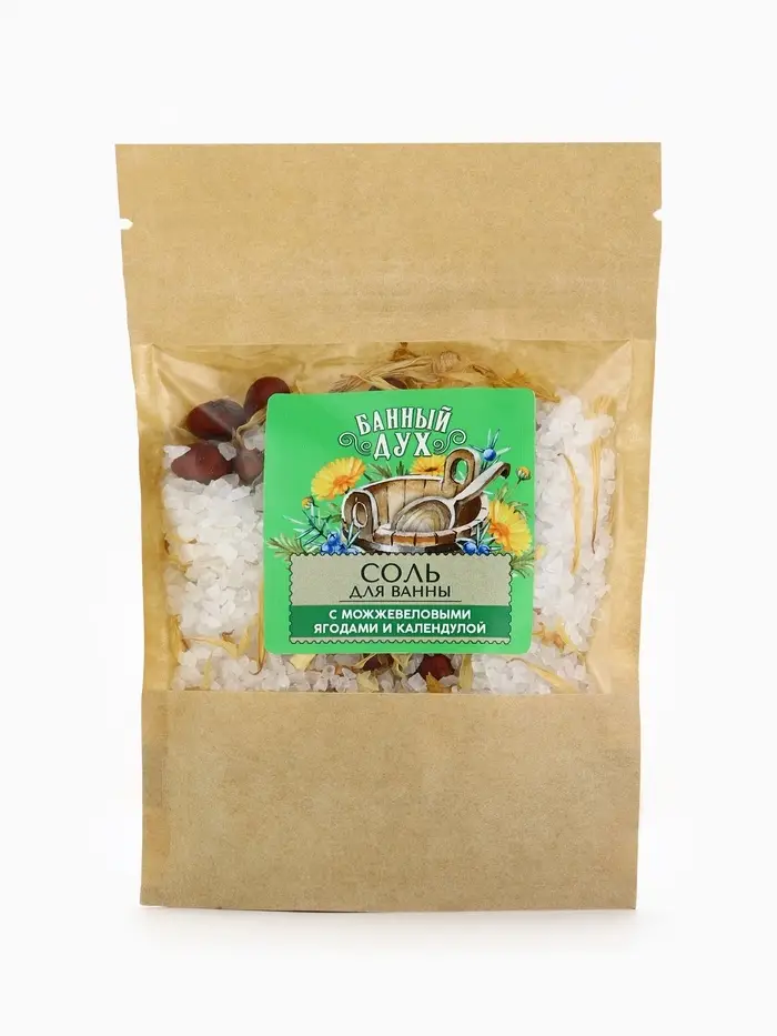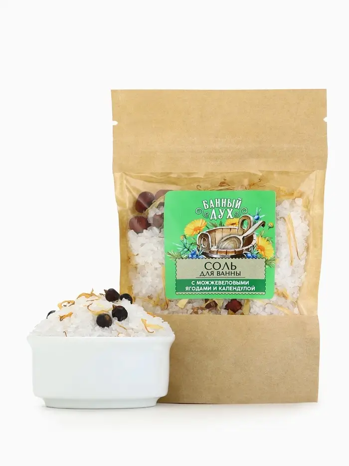 Соль для ванны с можжевеловыми ягодами и календулой, 150 г, Банный дух