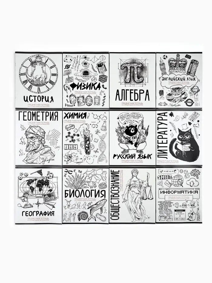 Тетради предметные, 48 л., набор из 12 шт., блок №1 «Скетчи»