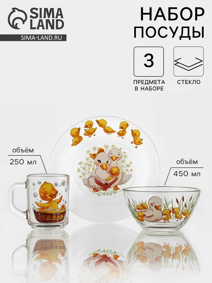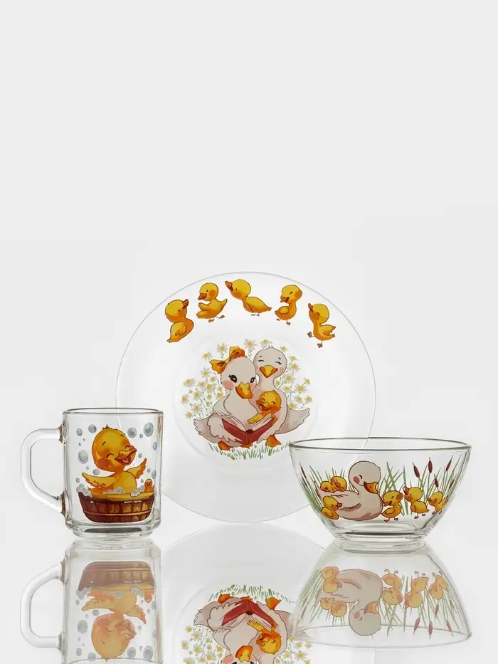 Набор детской посуды «Утята», 3 предмета: кружка, салатник, тарелка, стекло, прозрачный