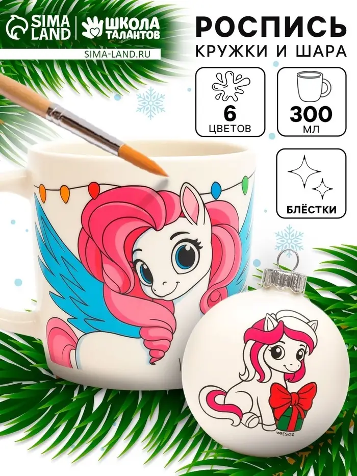 Роспись кружки и шара красками «Лошадки», 300 мл