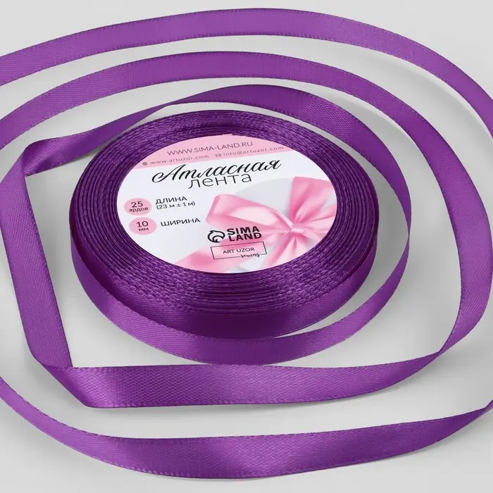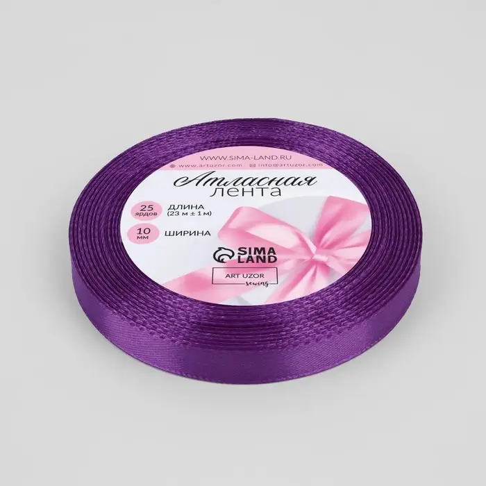 Лента атласная, 10 мм × 23 ± 1 м, цвет пурпурно-фиолетовый №35