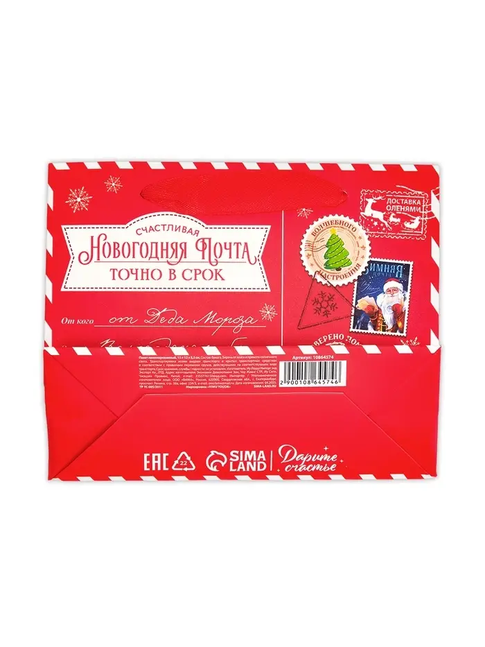 Пакет ламинированный подарочный «С Новым годом», S 12×15×5.5 см