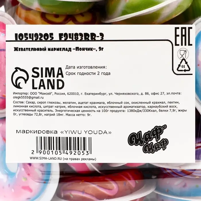 Жевательный мармелад "Пончик" — это сладкое угощение, которое перенесет вас в мир удовольствия и радости! Этот мармелад порадует вас восхитительным вкусом, который напоминает о свежих и ароматных пончиках с разнообразными глазурями.