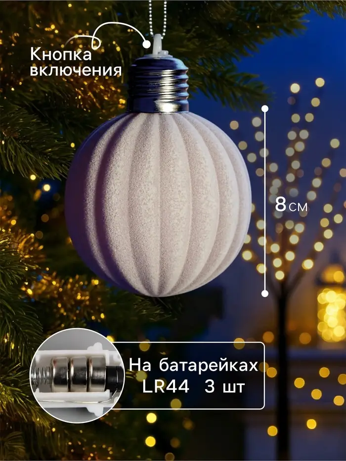 Светодиод с тёплым белым свечением добавляет шарму и создает мягкий свет, который прекрасно подходит для вечерних посиделок и праздничных мероприятий. Благодаря питанию от трёх батареек LR44, вы можете разместить его в любом удобном месте, не беспокоясь о проводах.