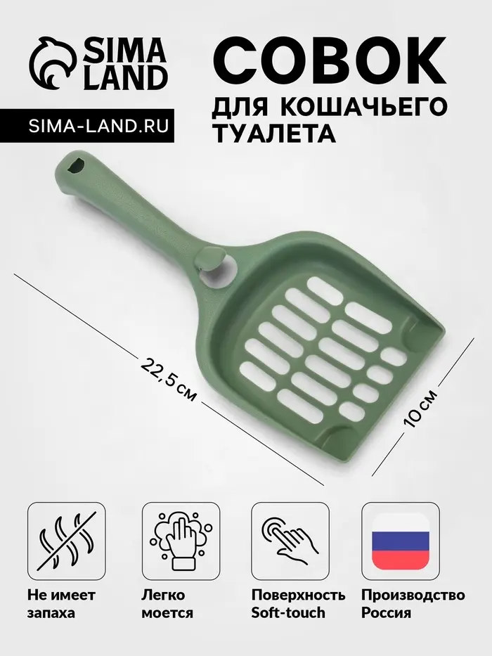 Совок для кошачьего туалета, 22.5×10×5 см, покрытие софт-тач, пластик, цвет изумруд