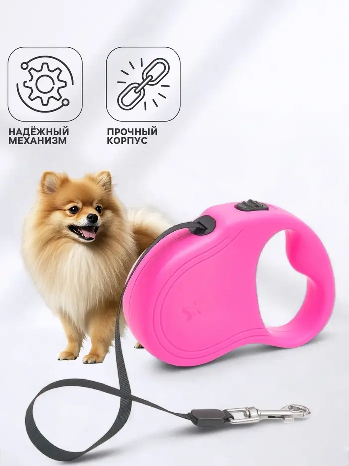 Стиль и порядок на каждой прогулке. Вытяжной поводок с лентой 3 м, розовый — надёжный выбор для владельцев собак весом до 10 кг. Лаконичный дизайн, плавное втягивание и удобная рукоятка делают его практичным решением для повседневного использования.