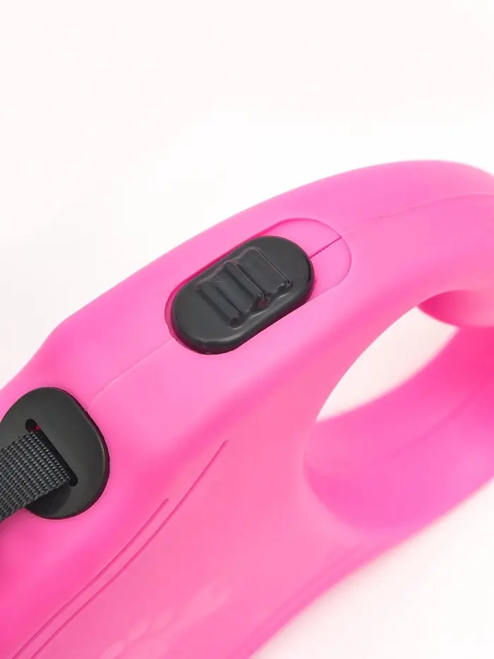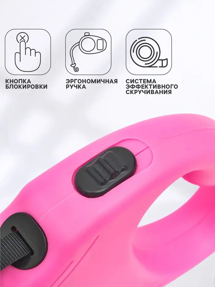- Светлый розовый корпус: Яркий цвет легко заметить в траве или на асфальте. Поводок не теряется визуально, что упрощает контроль за питомцем в оживлённых местах.