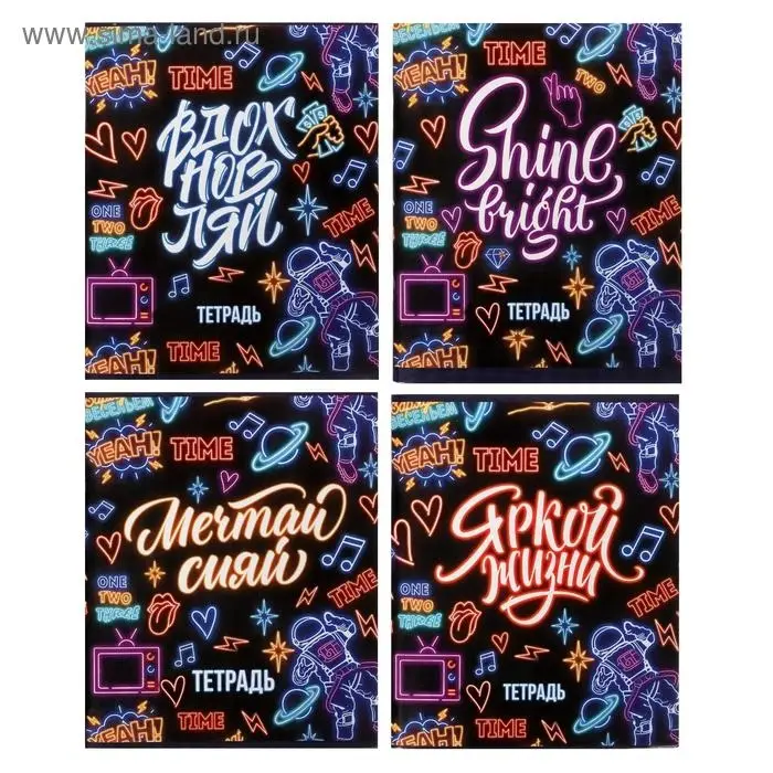 Тетрадь 96 листов в клетку Calligrata "Неон", обложка мелованный картон, блок офсет, МИКС