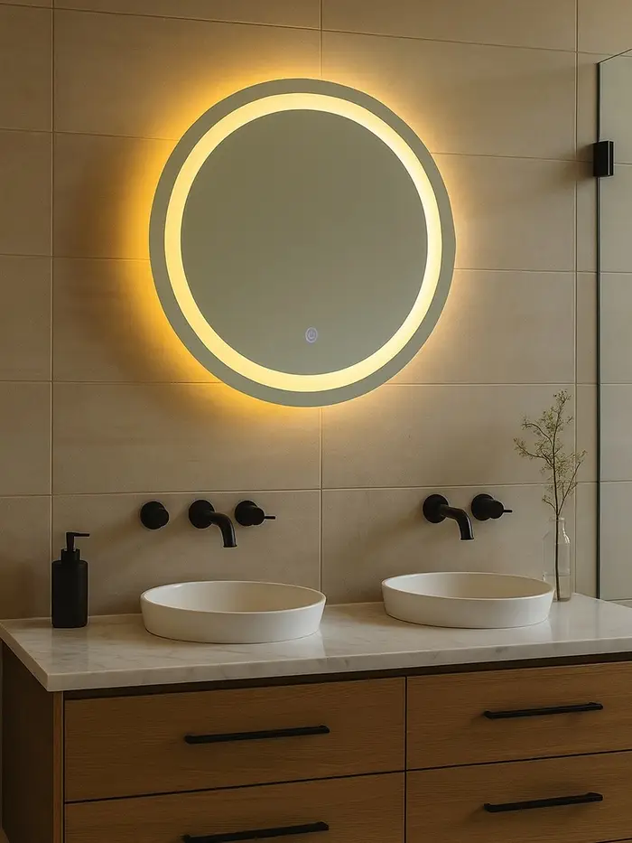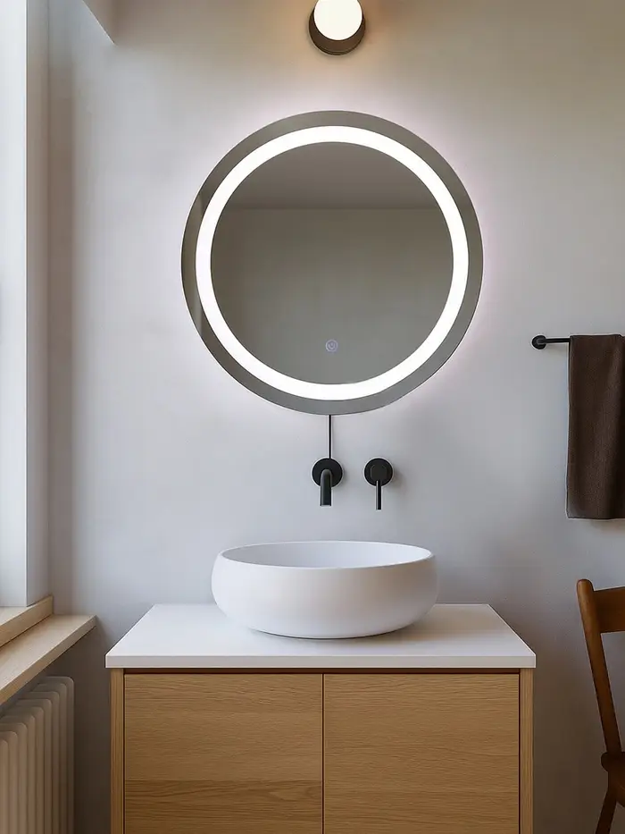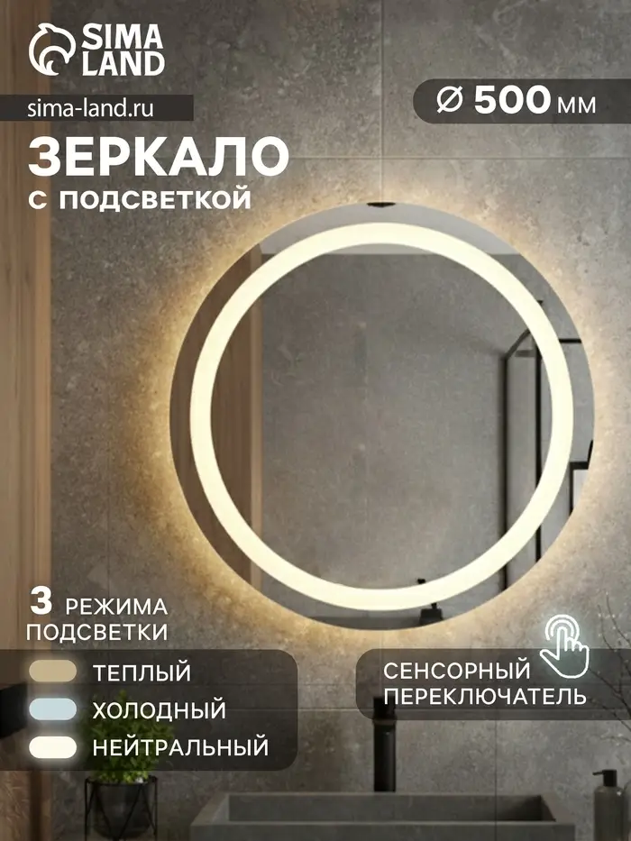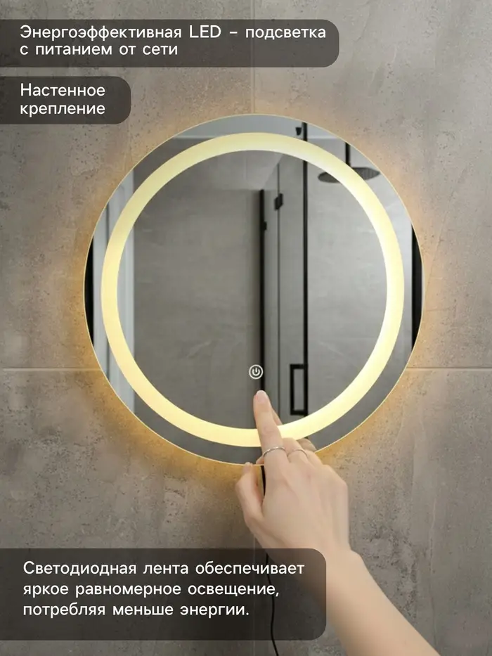 Зеркало интерьерное настенное, с подсветкой, с сенсорной кнопкой, 50×50 см