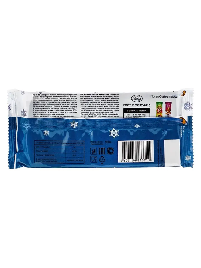 "Новогодние приключения" молочная 100гр*25шт