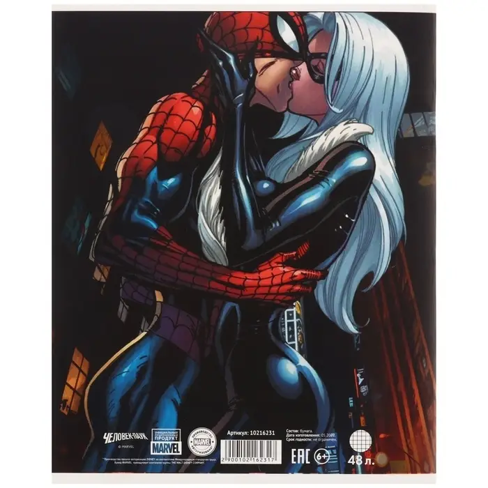 Тетрадь в клетку 48 листов, картонная обложка, «Человек-паук»
